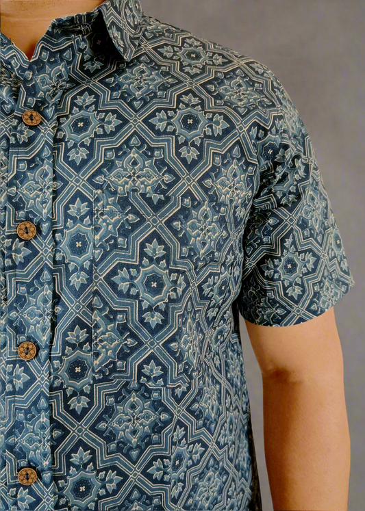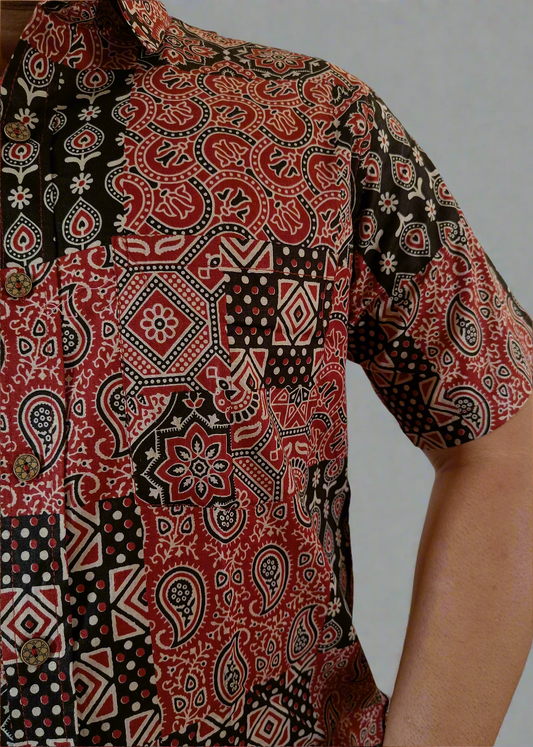 RAJASTHANI AJRAK FUSION PRINT MEN’S COTTON SHIRT