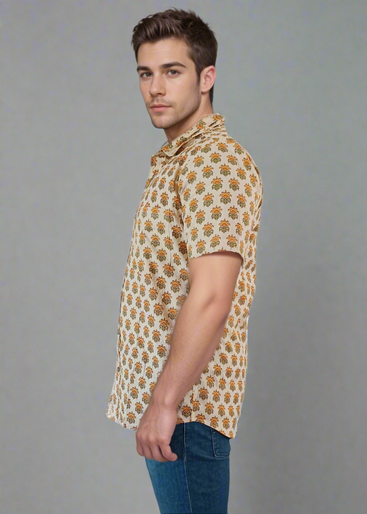 CLASSIC HANDBLOCK PRINTED MEN’S COTTON SHIRT