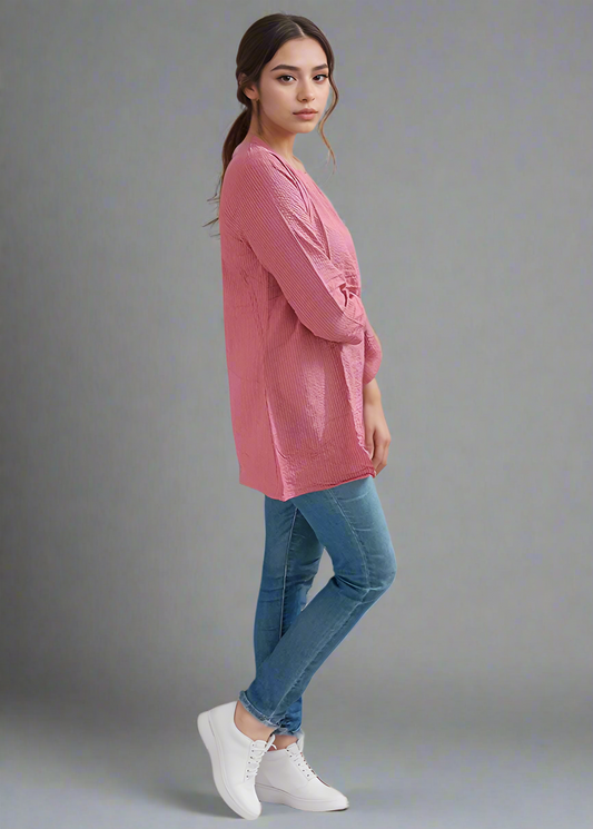 PINK KANTHA EMBROIDERED COTTON TUNIC KURTI TOP