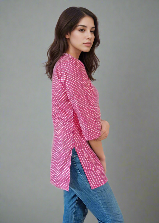 FESTIVE JAIPURI LEHRIYA TUNIC KURTI TOP