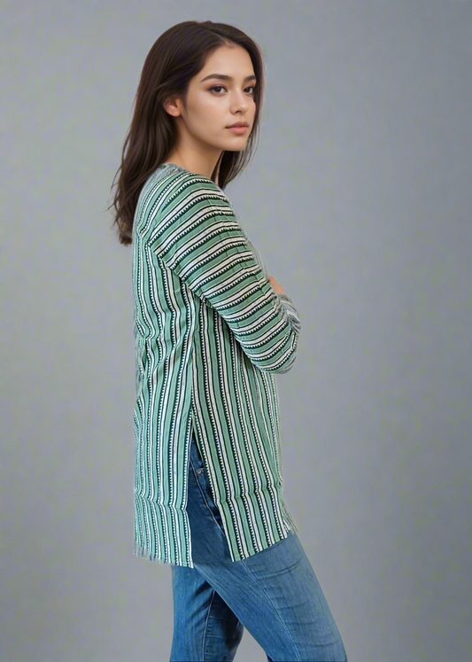 GREEN AJRAK PRINT COTTON TUNIC KURTI TOP