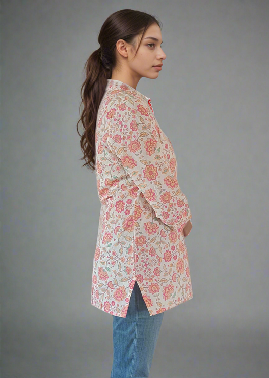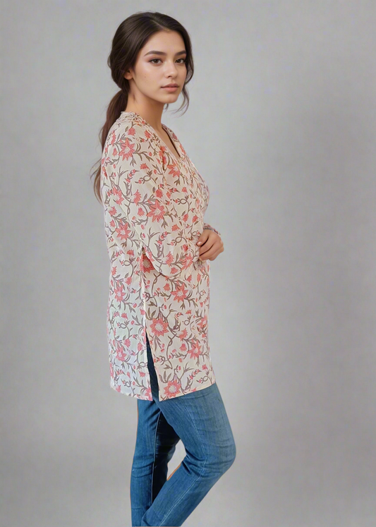 JAIPURI PINK FLORAL COTTON TUNIC KURTI TOP